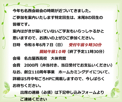 2024.6.29 お知らせ>2024年度総会記録 卒業年早見表更新