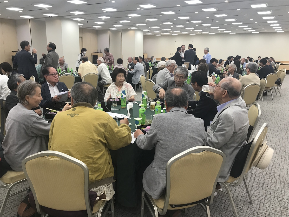 | 懇親会の様子(1) A卓(8,11,12,14回生) F卓(28,29回生) |