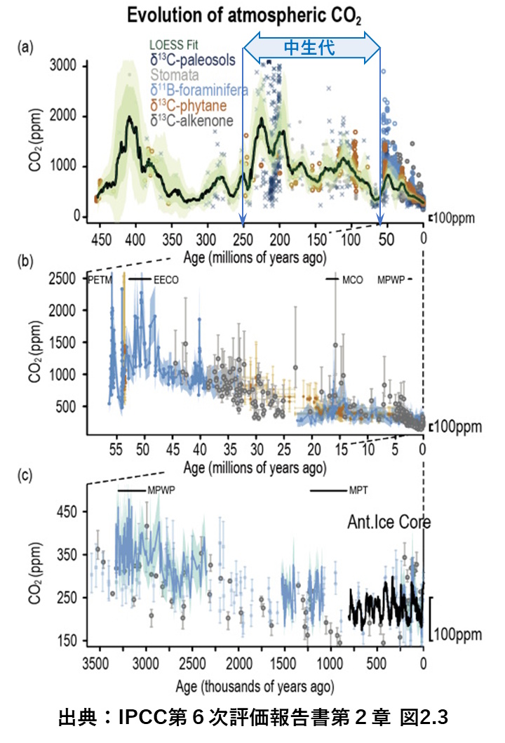 (3)中生代は、高温、高濃度二酸化炭素環境